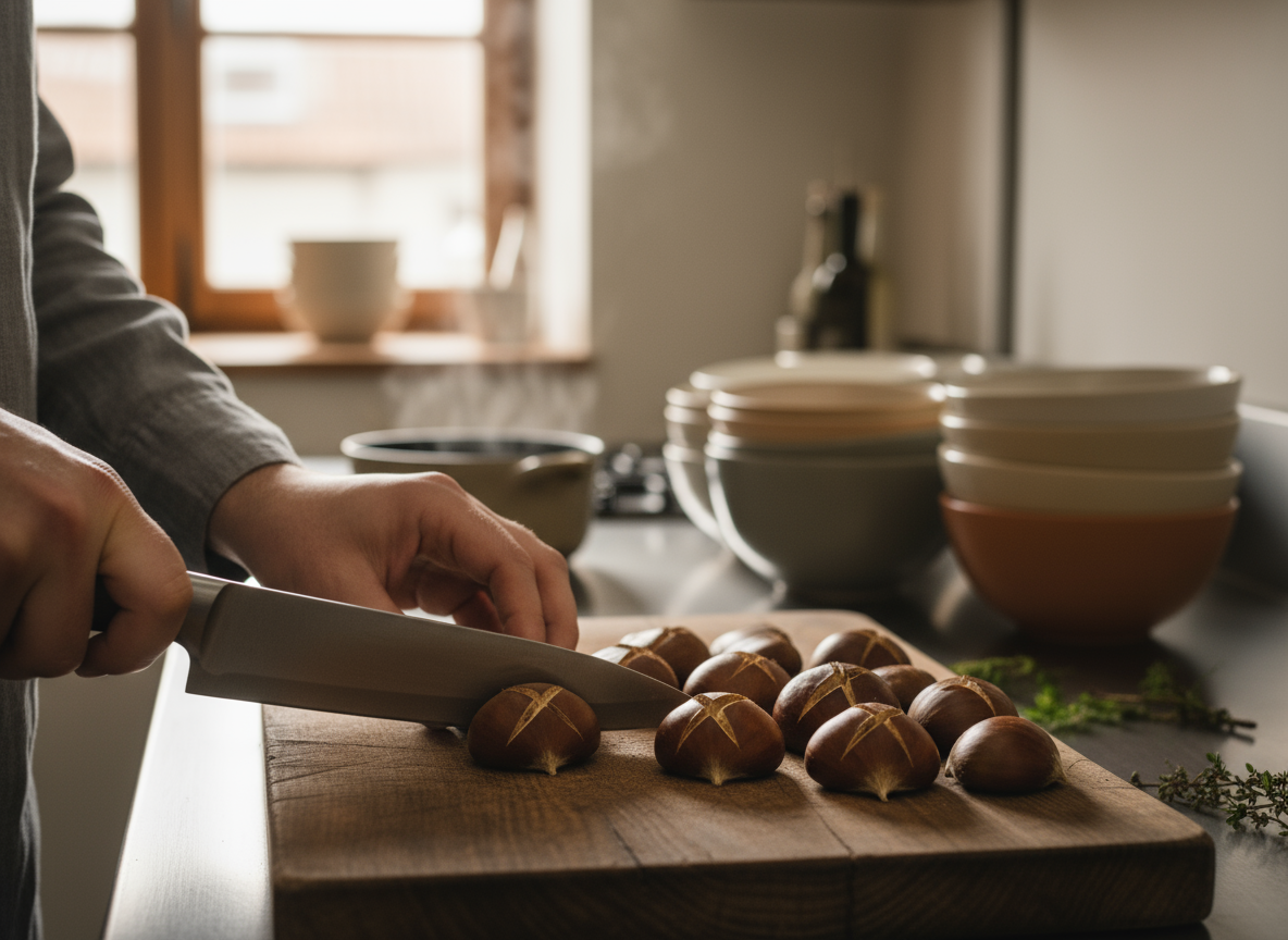 A: 밤을 따뜻한 물에 30분 이상 불리면 껍질이 유연해져 칼집 내기가 훨씬 쉬워집니다. 또한, 밤 전용 칼이나 가위를 사용하면 더 안전하고 편리하게 칼집을 낼 수 있어요.