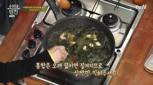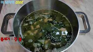 물을 한 번에 다 넣지 말고 2차례로 나눠 넣는 방법도 있어요. 처음에는 미역이 잠길 정도만 넣고 센불에서 끓이다가, 국물이 뽀얗게 우러나면 나머지 물을 추가하는 거죠. 이렇게 하면 단시간에도 진한 국물 맛을 낼 수 있답니다.