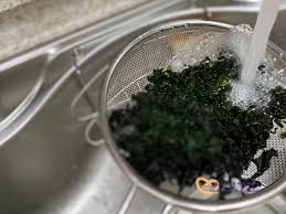불린 미역은 3~4번 정도 깨끗하게 헹궈서 불순물을 제거하고, 먹기 좋은 크기로 잘라주시면 됩니다. 미역을 손으로 바락바락 주물러 씻으면 불순물도 제거되고 미역이 더 부드러워져요.
