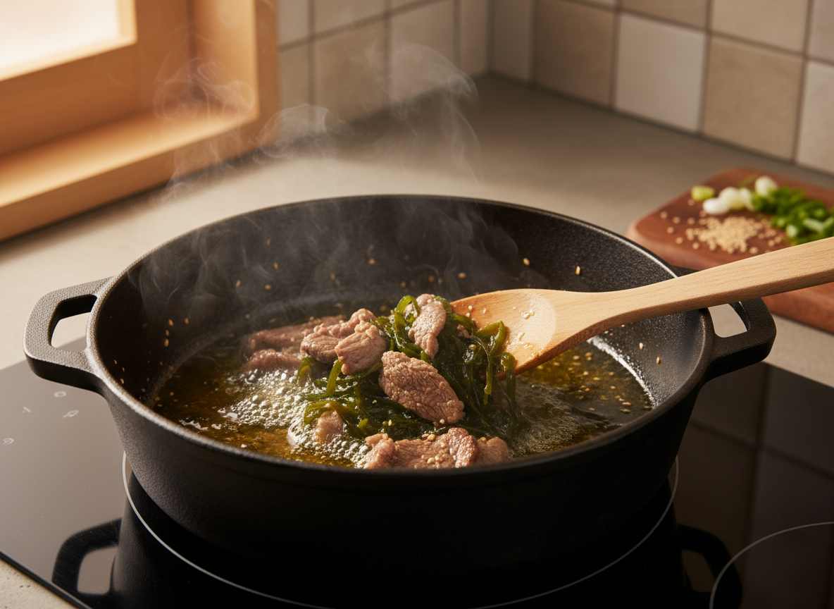 많은 분들이 궁금해하시는 부분이 바로 이거예요. "미역국을 끓일 때 꼭 볶아야 하나요?" 정답은 YES! 참기름에 고기와 미역을 볶는 과정이 미역국 맛있게 끓이는 방법 중에서도 가장 중요한 핵심 비법이랍니다.