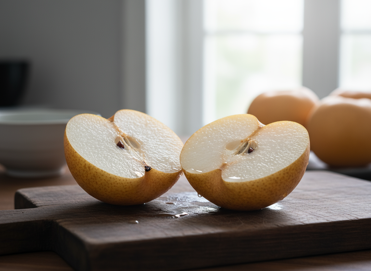 배에는 항염과 항알레르기 작용을 하는 루테올린 성분이 함유되어 있습니다. 염증을 완화해 기관지 자극을 줄여 기침을 멈추는 데 효과가 있으며, 꽃가루나 먼지로 인한 알레르기성 기침 완화에도 도움이 됩니다.
