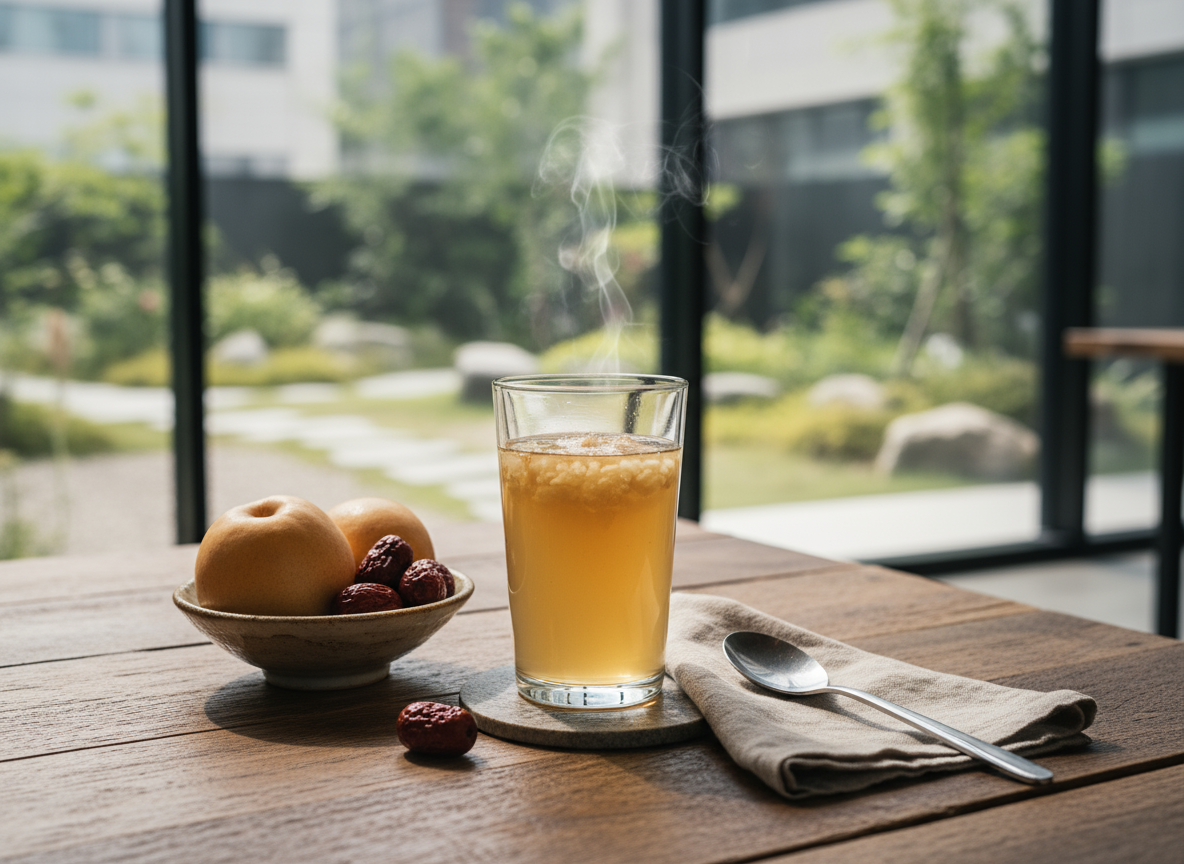 신선한 배를 직접 갈아 즙을 내거나 끓인 배즙에 꿀, 대추, 생강 등을 첨가하면 더 높은 항염 효과를 기대할 수 있어요. 기침 가래에 좋은 차를 찾는 분들에게 가장 추천하는 차 중 하나입니다.