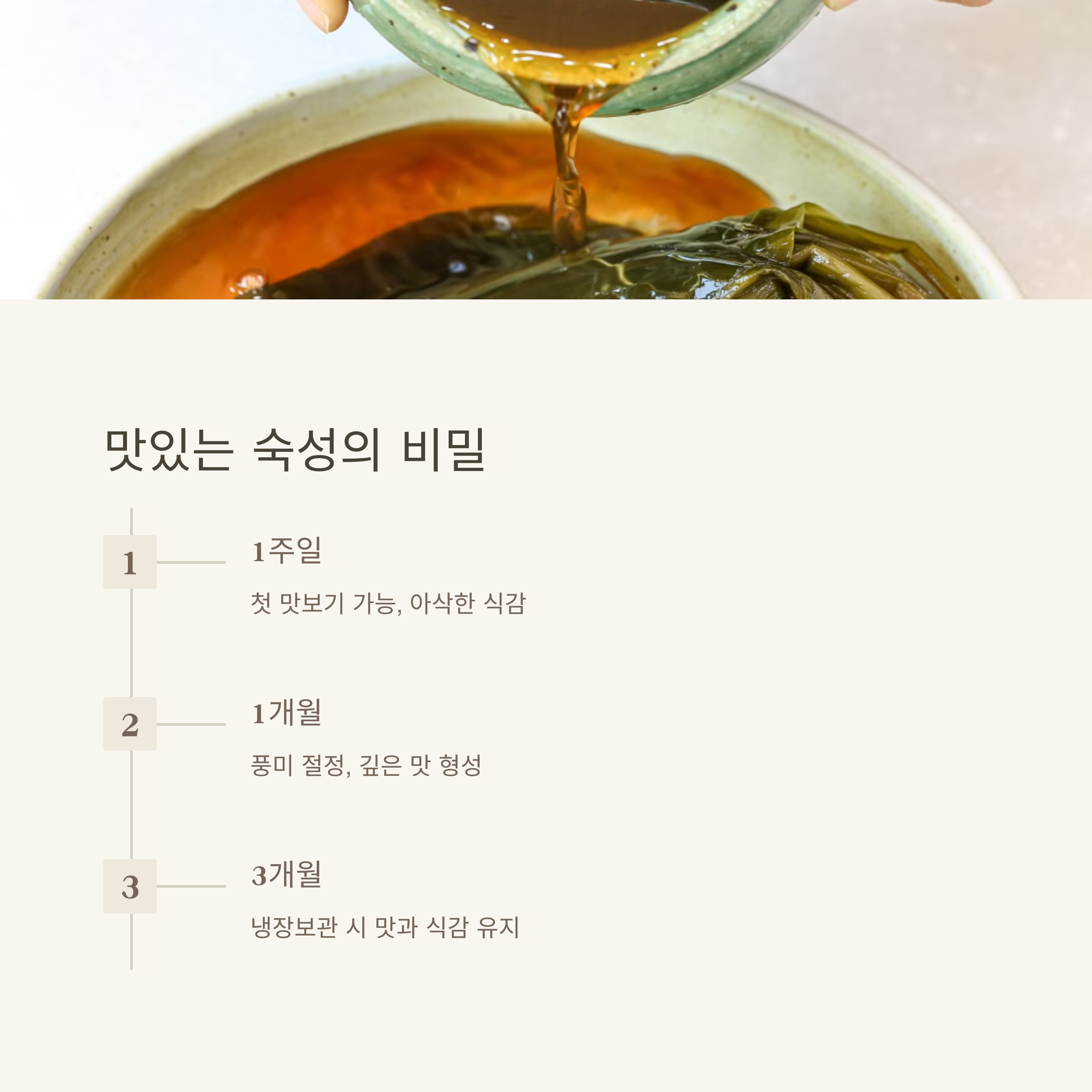 1주일 후부터 먹기 시작할 수 있지만, 1개월 이상 숙성하면 깊은 맛이 배가 돼요.