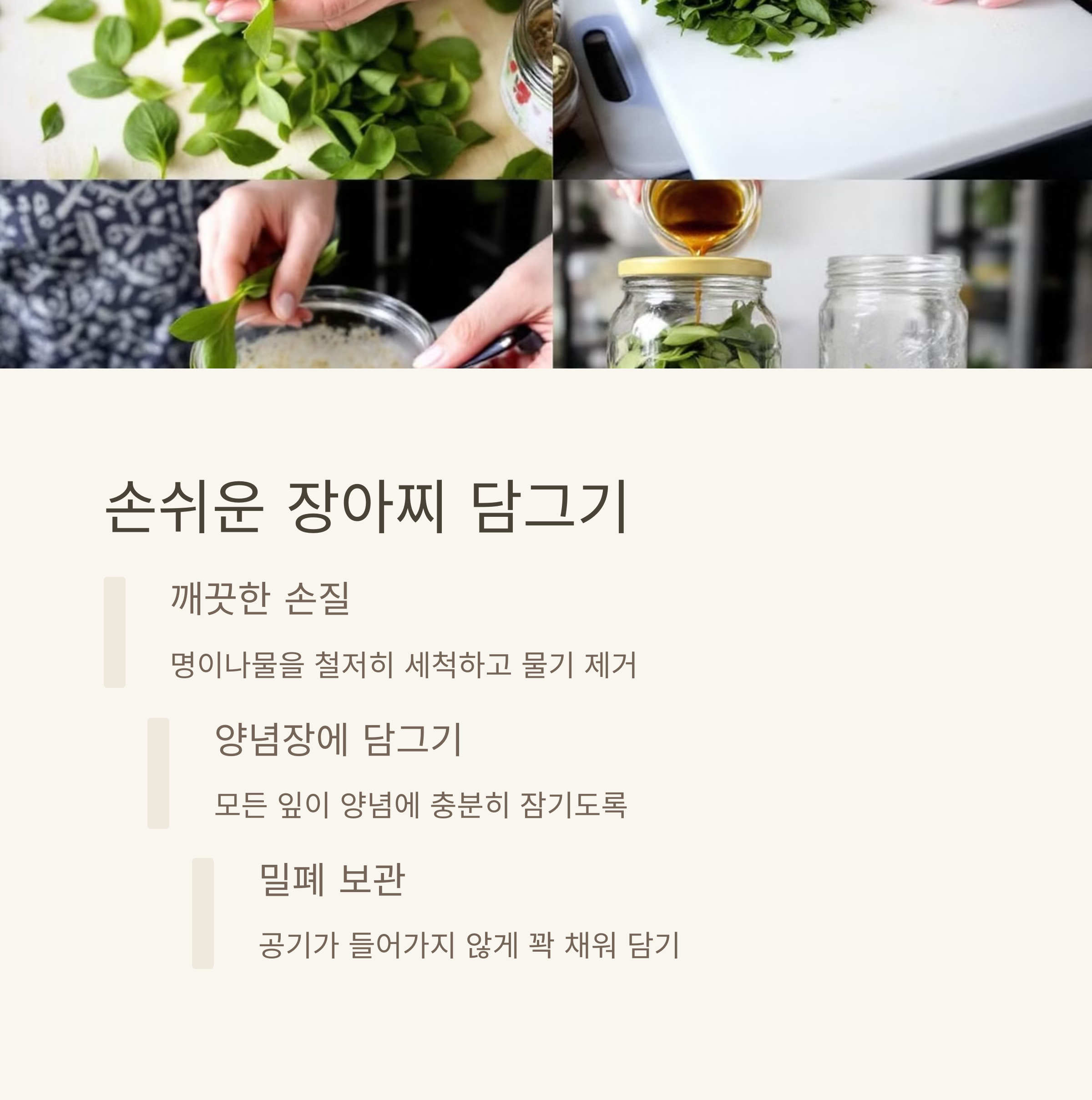 재료 준비부터 숙성까지 하나하나 따라 하다 보면, 금세 맛있는 장아찌를 완성할 수 있답니다! 😊🥬