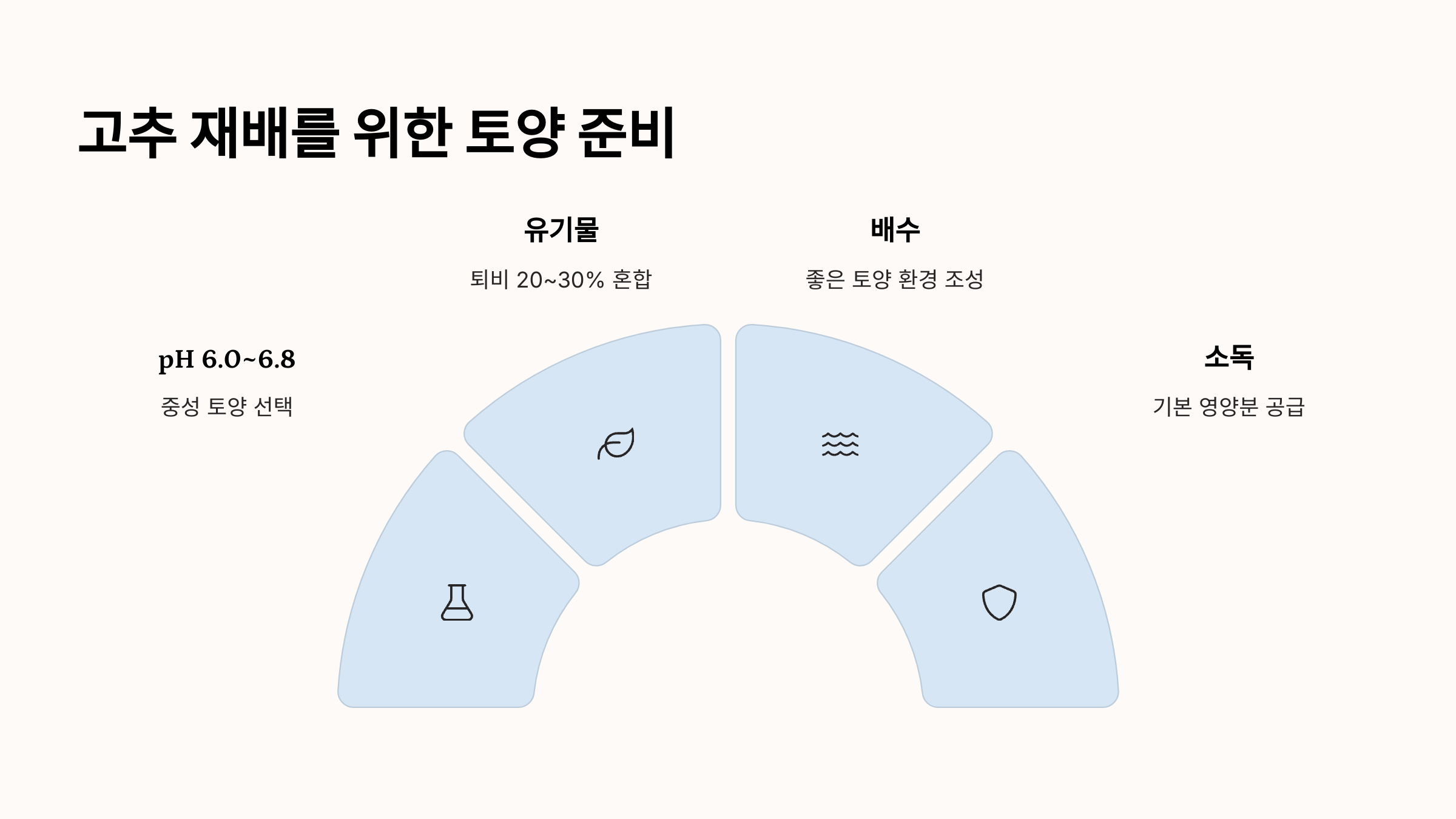 고추가 잘 자라려면 환경이 중요해요. 햇빛이 풍부하고, 물 빠짐이 좋은 토양을 준비해야 합니다.