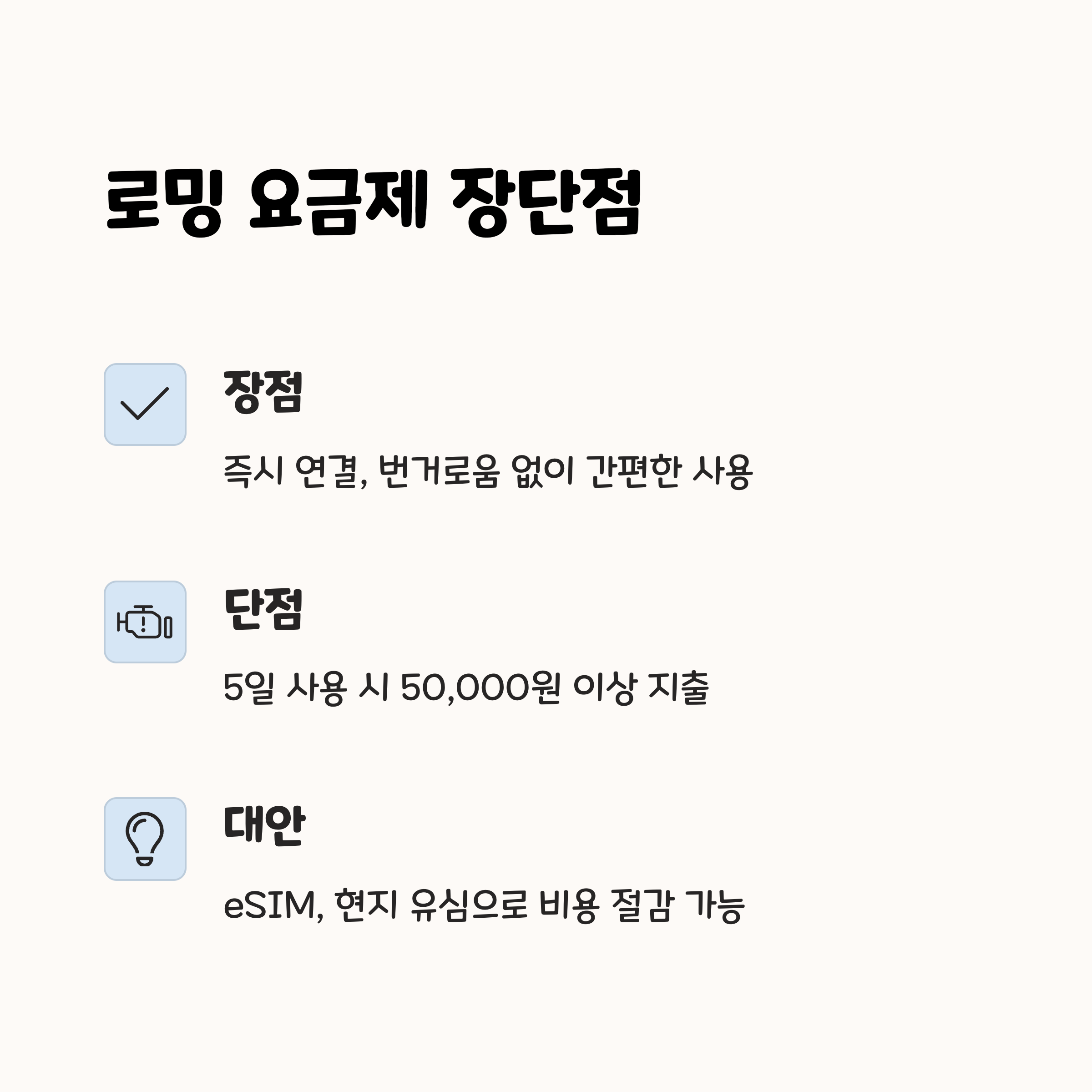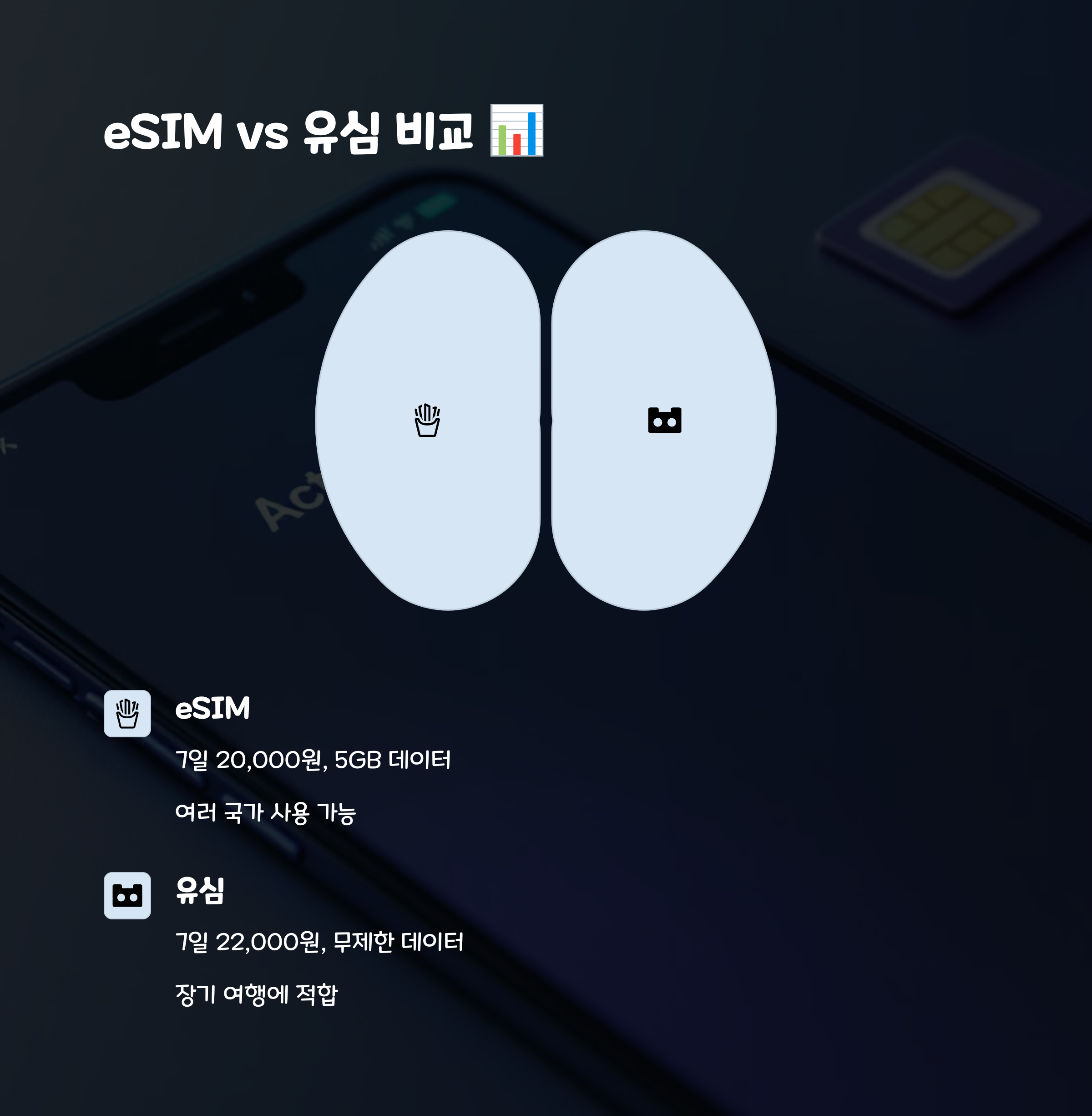 편리하지만, 5일 쓰면 50,000원 넘을 수 있어요. 그래서 eSIM과 유심이 대안으로 주목받고 있죠.
