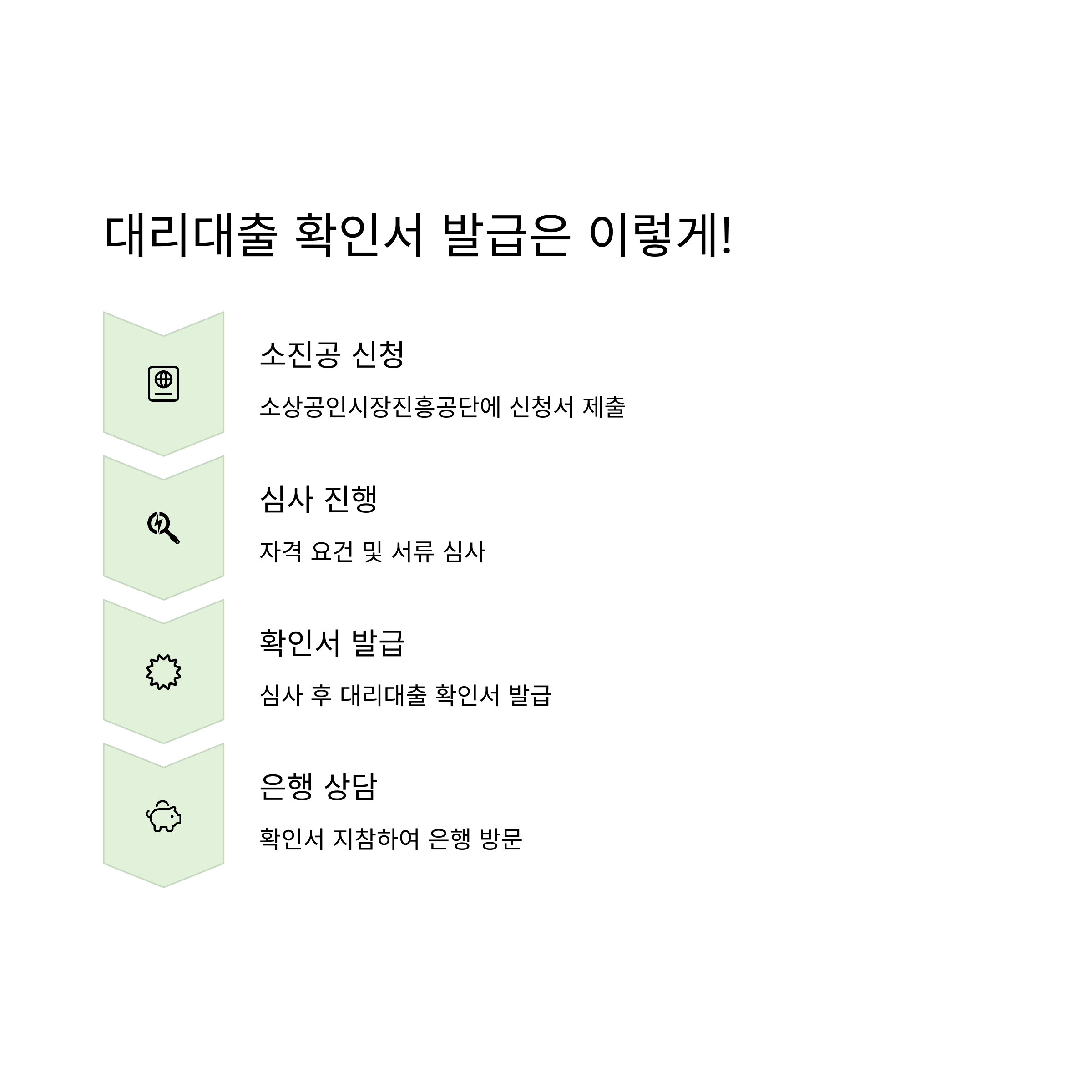 - 대리대출 확인서 신청: 소진공 온라인 시스템 또는 지역 소상공인지원센터를 통해 확인서를 발급받아요. 마이데이터 서비스를 이용하면 서류 제출이 간편해진답니다!