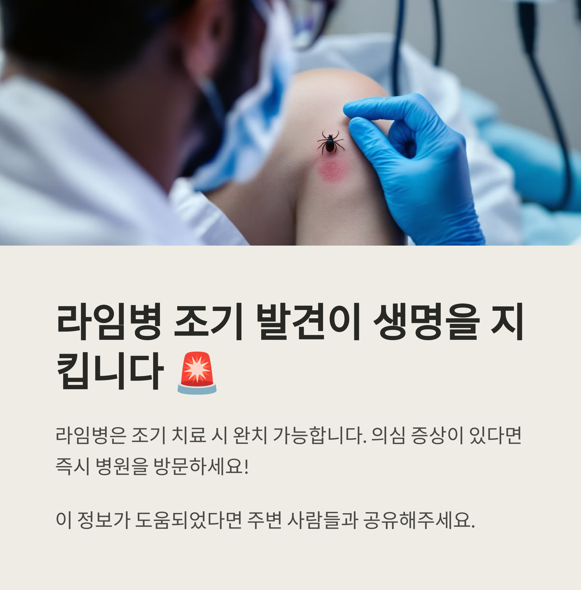 - 라임병: 과녁 모양 발진이 대표적이며, 조기 치료가 중요합니다.