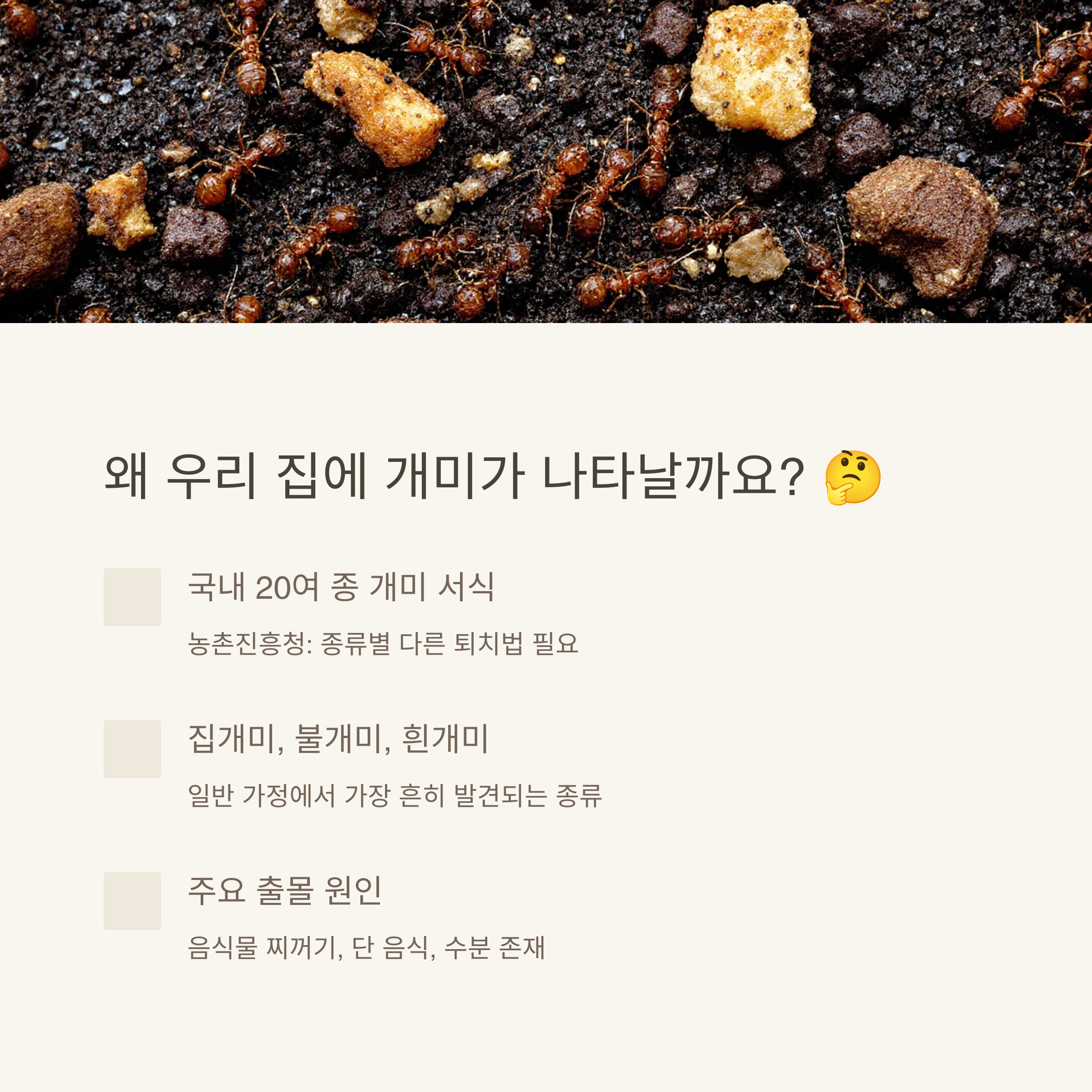농촌진흥청에서 권장하는 방법부터 실제 효과가 입증된 가정용 개미 퇴치 노하우까지, 이 글 하나로 모든 개미 문제를 해결해보세요!
