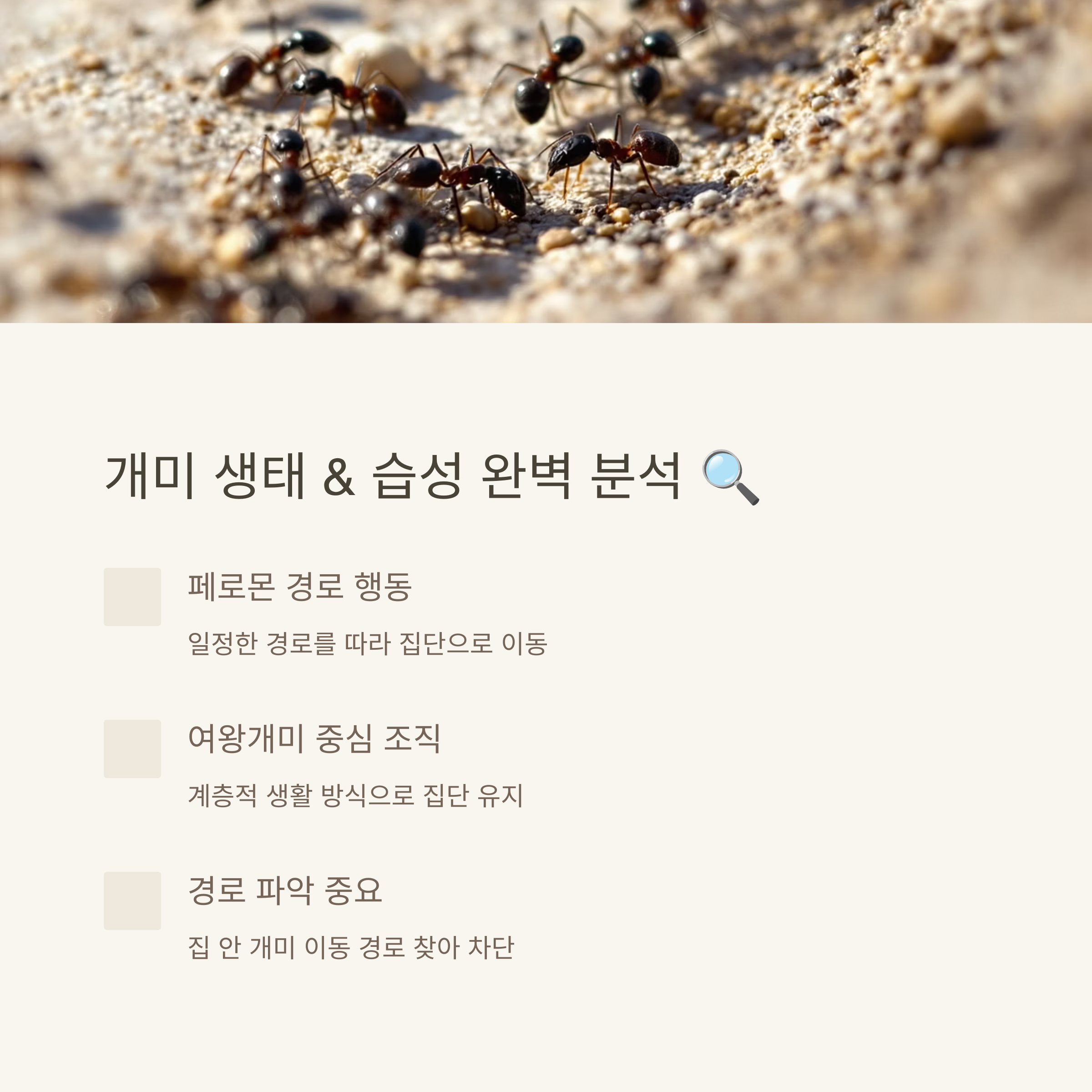 개미를 효과적으로 퇴치하기 위해서는 먼저 개미의 생태와 습성을 이해하는 것이 중요합니다. 개미는 주로 음식물 찌꺼기, 단 음식, 수분 등을 찾아 움직이며, 페로몬 경로를 따라 집단으로 행동합니다.