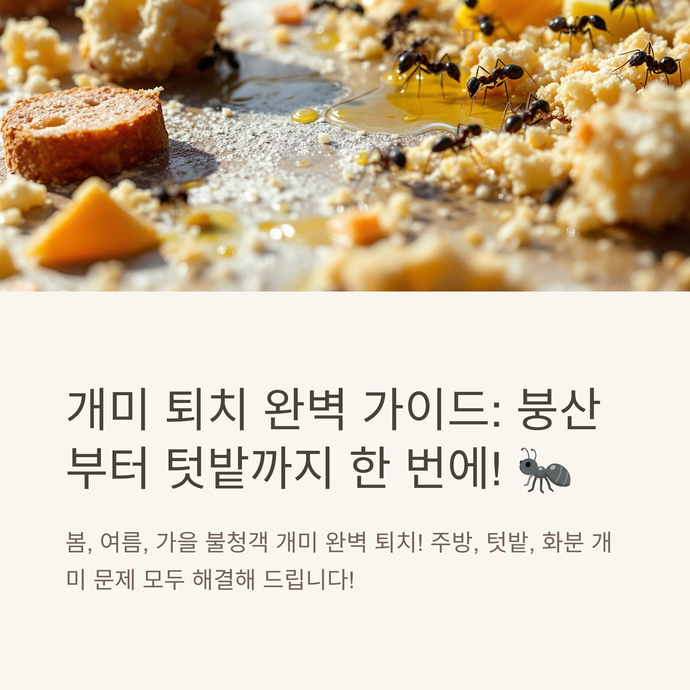 봄부터 가을까지 집 안팎을 괴롭히는 불청객, 개미! 특히 주방이나 텃밭, 화분 주변에 개미가 출몰하면 골치가 아프죠. 오늘은 안전하고 효과적인 개미 퇴치법을 장소별로 상세히 알려드립니다.