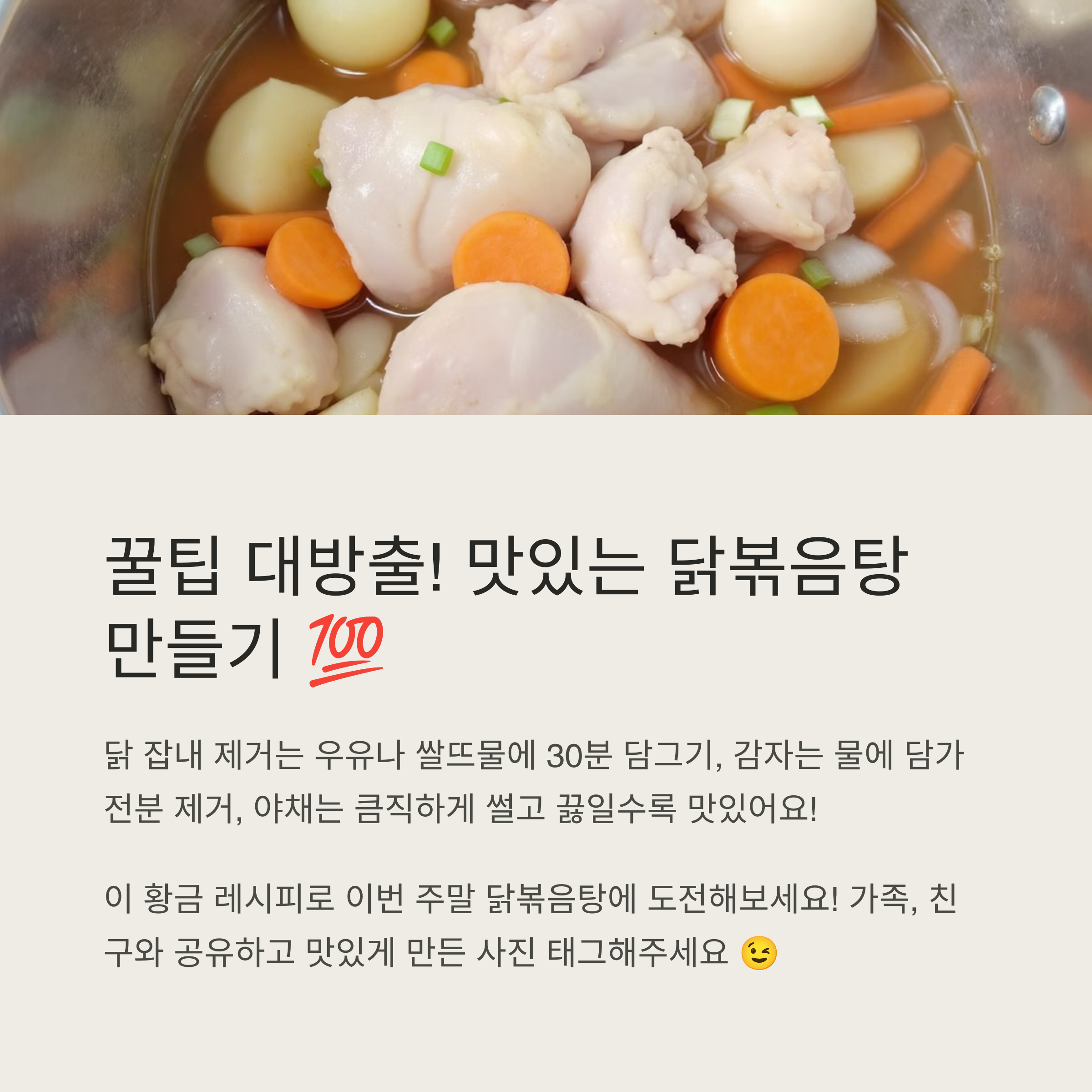 닭볶음탕의 매력은 간단한 재료로 깊은 맛을 낼 수 있다는 점! 🥄