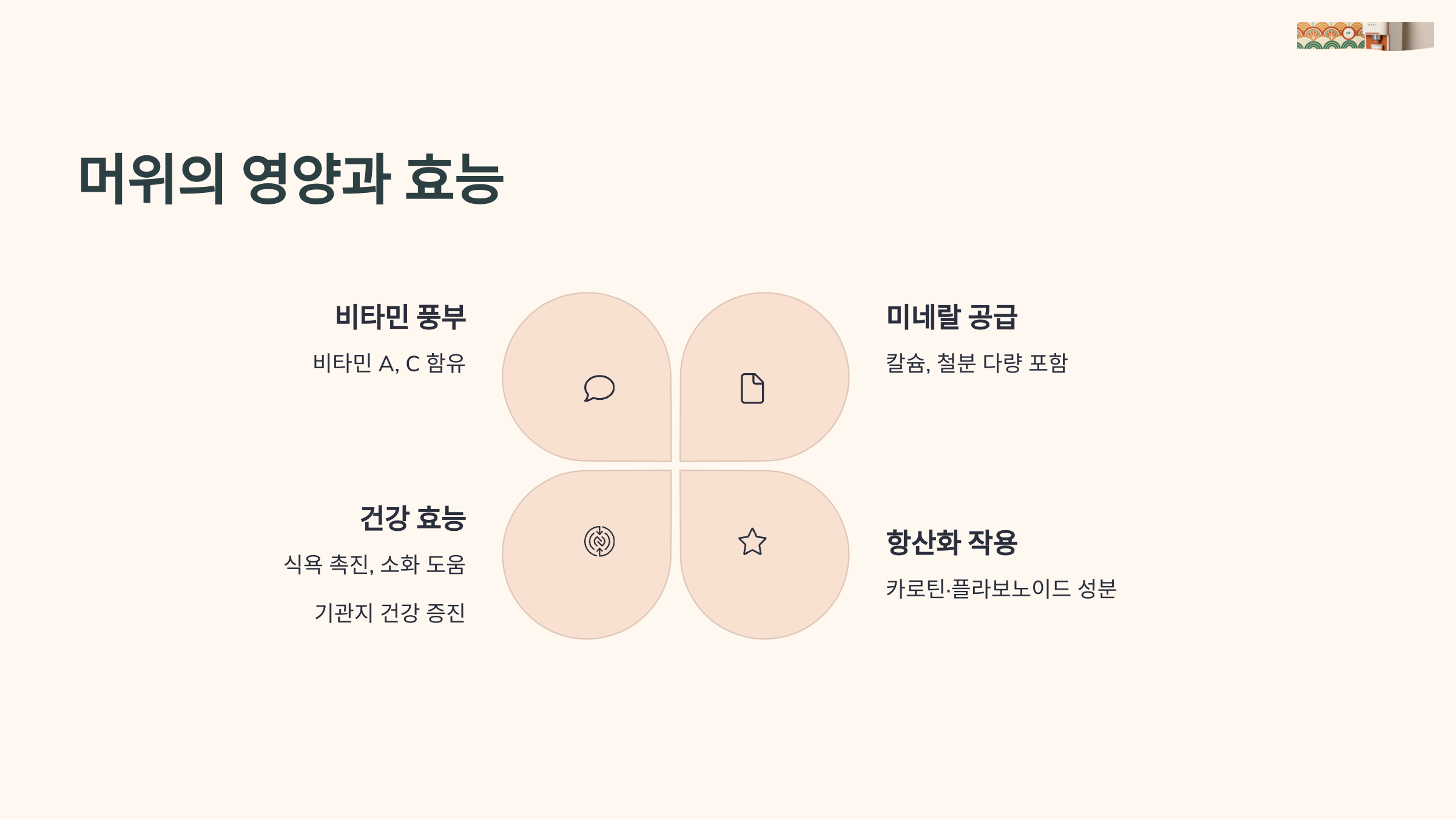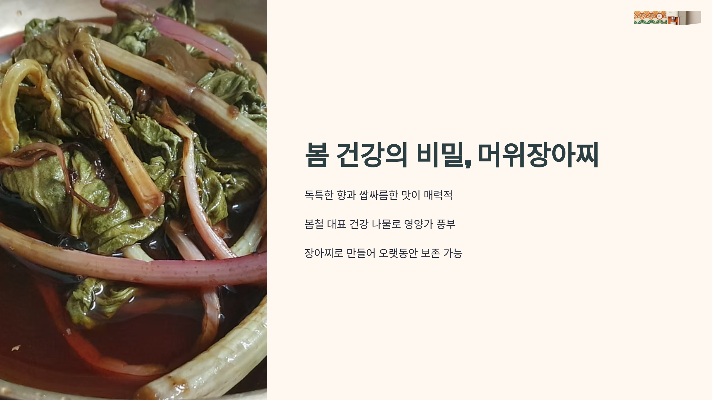 특히 머위의 쓴맛은 식욕을 돋우고 소화를 촉진하는 역할을 하기 때문에, 봄철 입맛이 없을 때 머위장아찌 한 점이면 식욕이 살아납니다. 머위장아찌 담는법을 익혀두면 영양가 높은 밑반찬을 오랫동안 즐길 수 있어요.