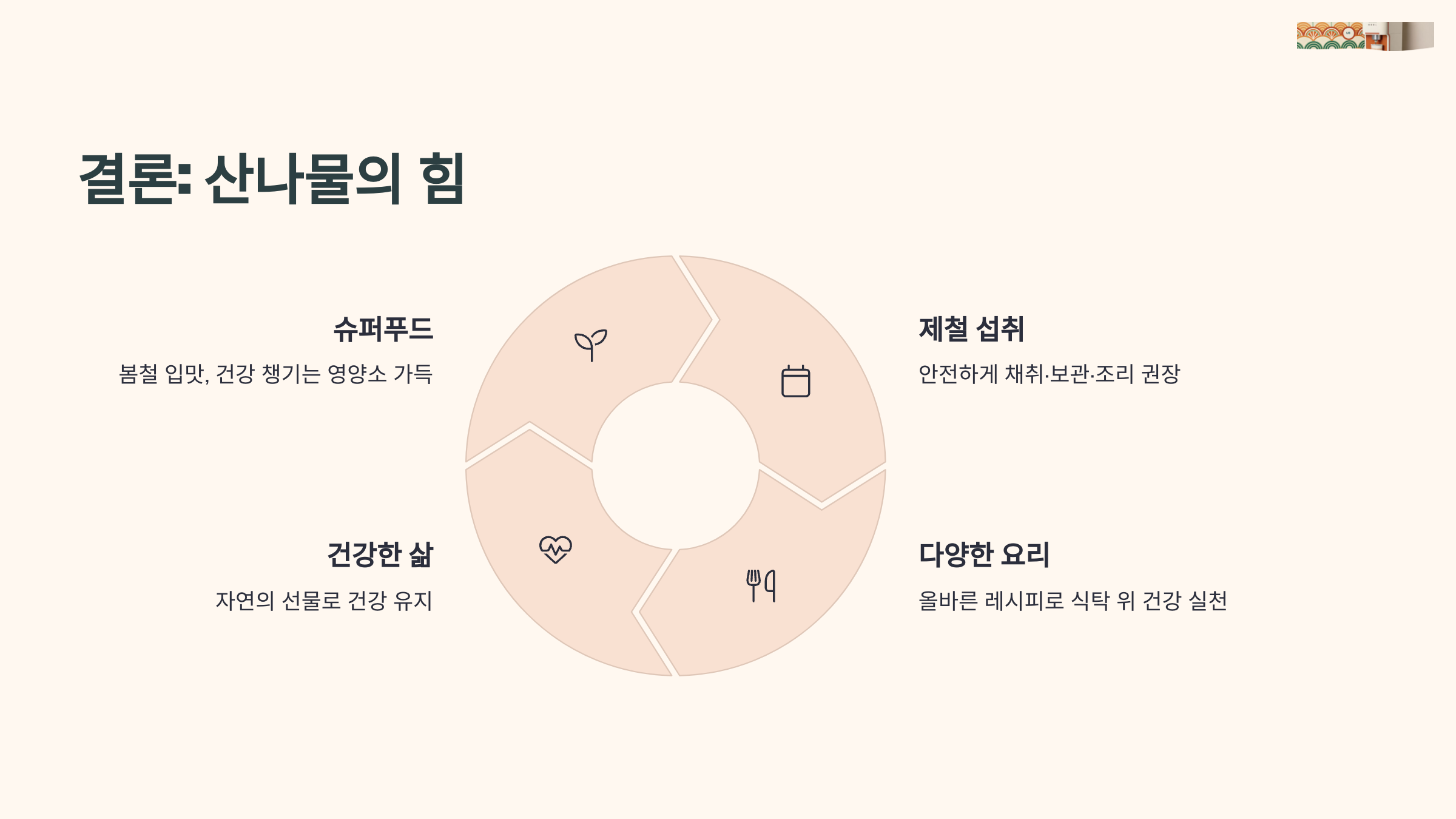 - 점심: 눈개승마 나물무침을 반찬으로 활용하기 좋은 시간입니다.