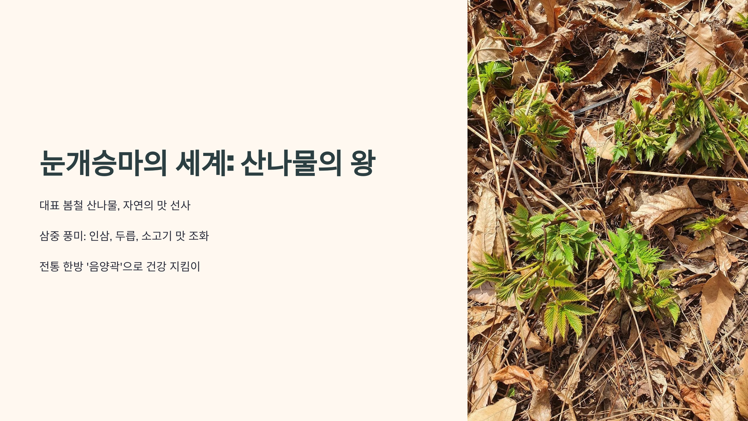 그러나 많은 분들이 눈개승마 먹는법에 대해 궁금해하십니다. 오늘은 눈개승마의 효능부터 다양한 먹는법까지 자세히 알아보겠습니다.