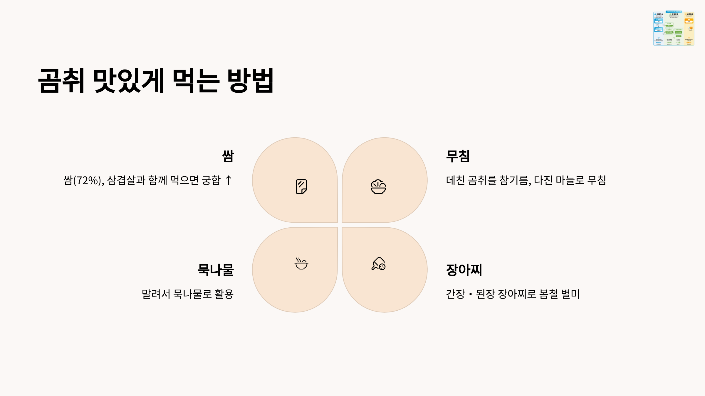 곰취는 단순한 산나물을 넘어 풍부한 영양소와 다양한 건강 효능을 가진 식재료입니다.